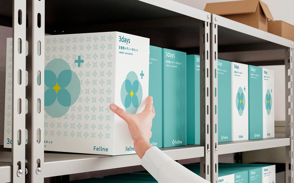 災害時、女性向け衛生用品は確実に入手できるとは限りません。身体が厳しい状況下に置かれた場合、不安等でホルモンバランスを崩し、⽉経がはじまってしまうことが考えられます。災害⽤レディースキットは、このような事態を解決するプロダクトです。