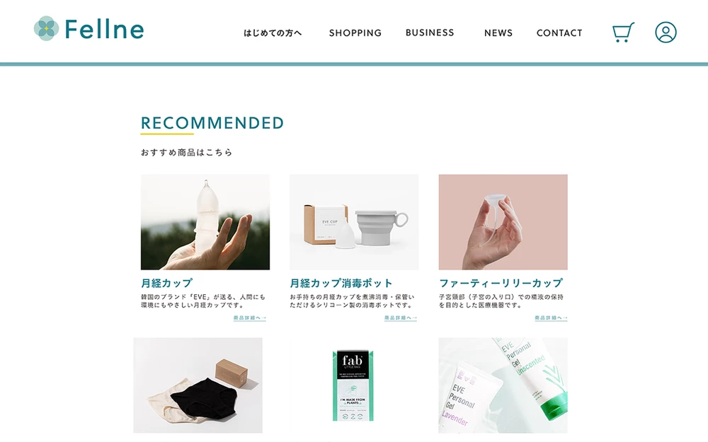 フェムケア用品をまずは知って頂くことを目的に、働く女性に向けた商品をラインナップしています。